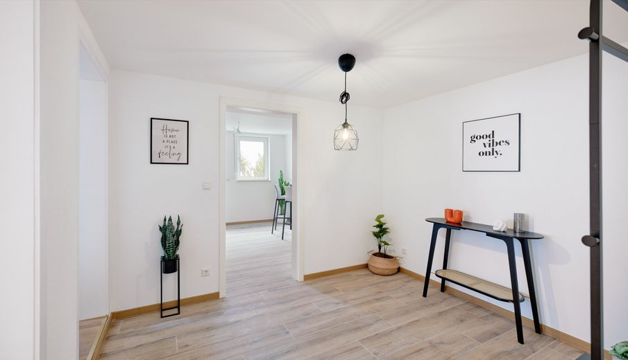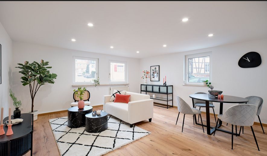 Zum Verkauf steht eine provisionsfreie, umfassend modernisierte 3,5-Zimmer-Wohnung mit rund 99 m² Wohnfläche im Erdgeschoss eines gepflegten Mehrfamilienhauses in Weil der Stadt – Merklingen.