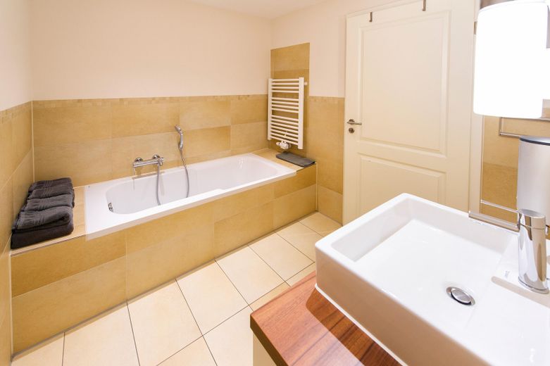 Die vier Bäder und das Gäste–WC sind modern ausgestattet. Das Bad im Dachgeschoss verfügt zusätzlich über eine Badewanne, die anderen Bäder jeweils über eine Dusche und ein WC.