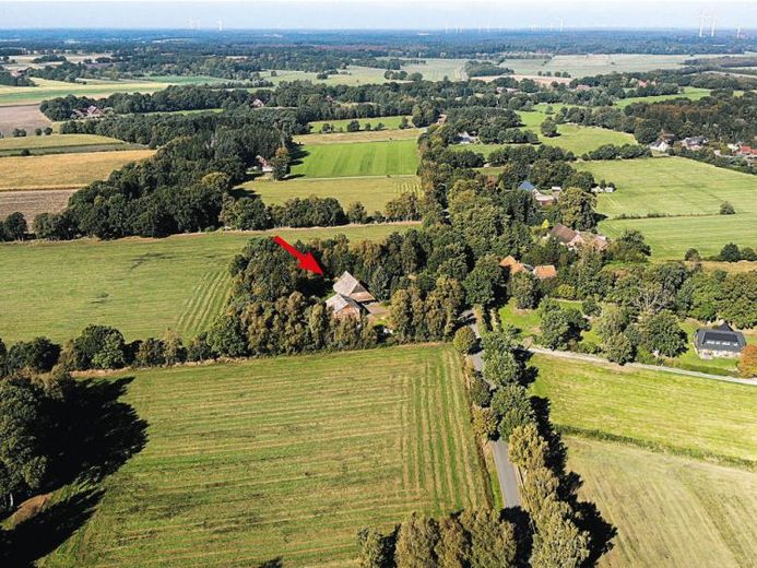 Ehemalige Hofstelle mit ca. 8,6 ha großem angrenzenden Ackerland und ca. 5.000 m² Grünland. Die Hofstelle ist mit mehreren Gebäuden bebaut und besteht aus zwei Flurstücken. Auf dem zum Verkauf stehenden Flurstück steht ein Einfamilienhaus mit Klinkerfassade und angeschlossenen Carports. Das Baujahr ist nicht bekannt. Krüppelwalmdach, Eindeckung mit Wellasbest. Fenster, Türen, Sanitär- und Elektroinstallationen in einfacher Ausführung, die Stromversorgung ist akt. abgeklemmt. Die Grundstücksauffahrt wird mit dem unmittelbaren Nachbarn geteilt, dies ist nicht grundbuchlich gesichert. Ein Energieausweis ist in Auftrag gegeben, liegt noch nicht vor.