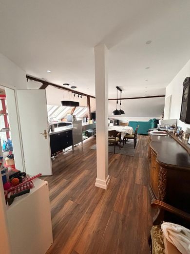 Diese helle und charmante Dachgeschosswohnung im 2. Obergeschoss der historischen alten Schule von Haselau verbindet stilvolles Wohnen mit besonderem Charakter. Der offene Wohn- und Essbereich mit integrierter Küche bietet viel Platz zum Wohlfühlen und wird durch sichtbare Holzbalken sowie den hochwertigen Parkettboden atmosphärisch abgerundet. Großzügige Fenster sorgen für viel Tageslicht und ermöglichen einen schönen Blick auf die Elbe.