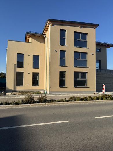 Die angebotene Wohnung ist eine moderne 2-Zimmer-Neubauwohnung im Hochparterre eines KfW-40-Effizienzhauses und bietet circa 60 m² Wohnfläche. Das Wohnkonzept überzeugt durch einen offenen Wohn-/Ess-/Kochbereich mit Zugang zu einem großzügigen, Süd-Balkon, der für eine angenehme Lichtstimmung sorgt. Das Schlafzimmer ist praktisch geschnitten und sorgt für ausreichend Privatsphäre.