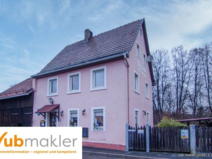 Im Erdgeschoss wird derzeit eine kleine Gaststätte betrieben, hier befindet sich auch die einzige Küche im Haus. Vom Flur aus gelangt man auch in die Scheune und in den Keller.