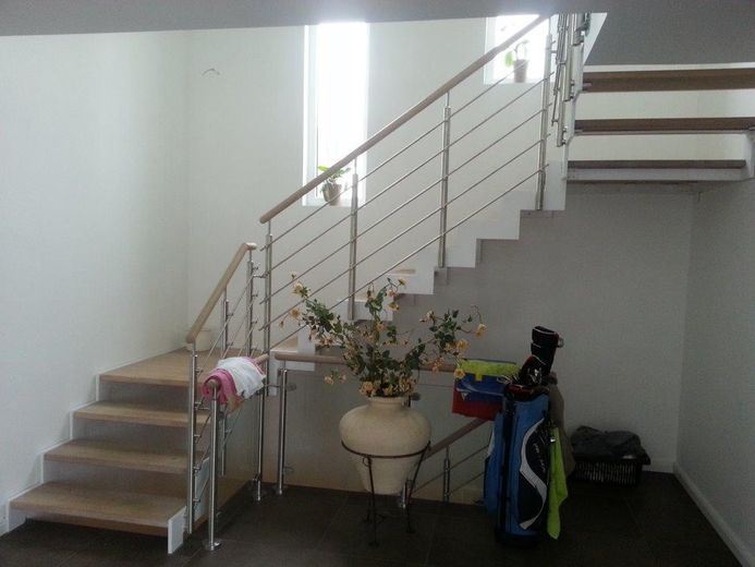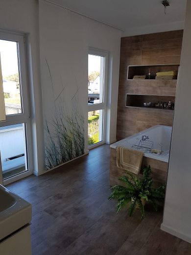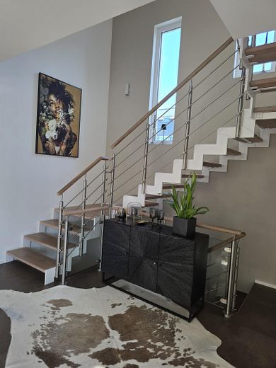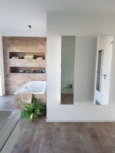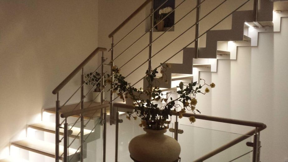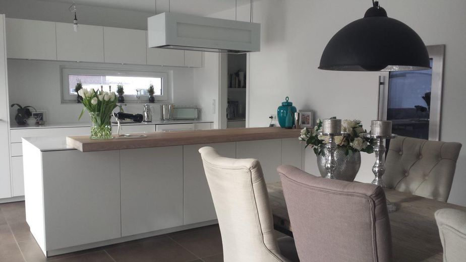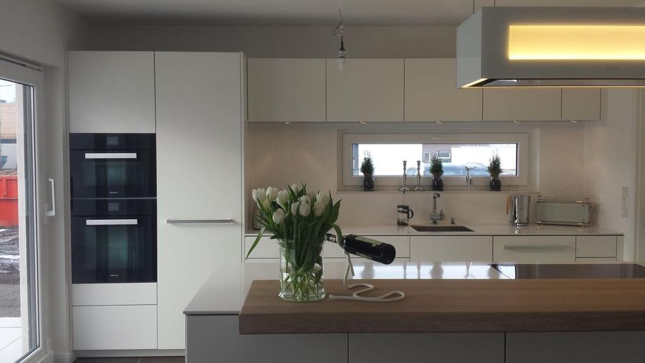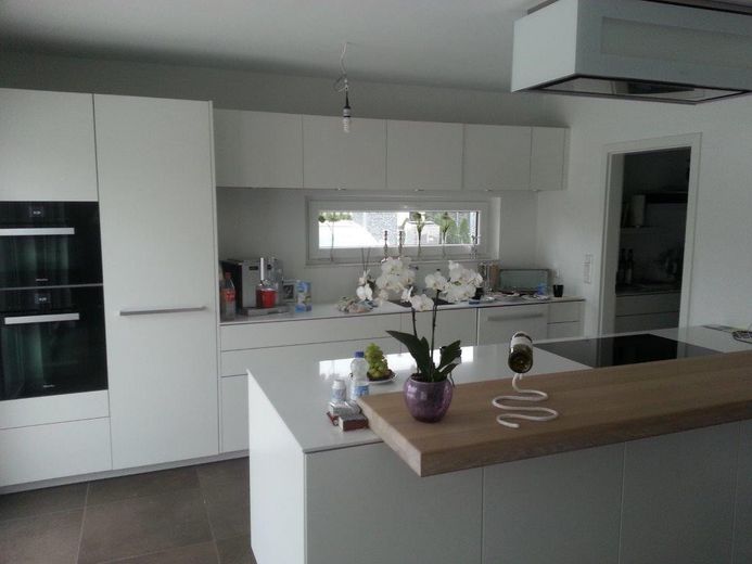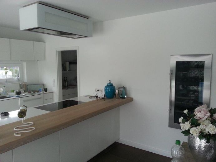 Diese hervorragende Wohnobjekt bietet zahlreiche Ausstattungen wie z.B. einen Wäscheschacht vom Vollbad im OG bis in den HWR im Keller, eine Luxus-Küche mit automatischen Auszügen sowie einem Backup-Bereich. Eine Designertreppe (Stahl/Glas/gekalktes Holz) verbindet das EG mit dem OG. Die Treppenstufen sind einzeln von unten beleuchtet. Ein Weintemperierschrank ist im Essbereich in die Wand integriert.
