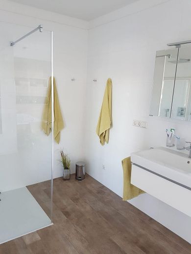 Modernes Einfamilienhaus in Bauhaus-Stil. 3 Etagen inkl. Keller mit Fußbodenheizung. Gelungene Fassadenkombination mit Putz und Holzverkleidung. Offener Bereich im EG mit Wohn-/Ess- und Küchenbereich. Gehobene Küche mit zusätzlichem Backup-Bereich. Gäste-WC und Arbeitszimmer. Im OG befinden sich 1 großes Zimmer, 1 Zimmer mit Balkon bzw. Dachterrasse, 1 Vollbad und 1 Duschbad. Im Keller befinden sich 3 weitere Räume, die derzeit als Schlafzimmer, Werkraum und Gästezimmer genutzt werden.