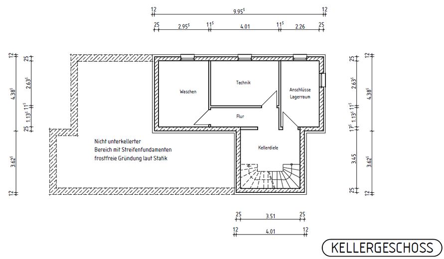 Große Fenster sorgen für viel Tageslicht und ein angenehmes Wohngefühl. Der teilunterkellerte Bereich bietet praktischen Stauraum sowie Platz für Technik oder Hobbys.