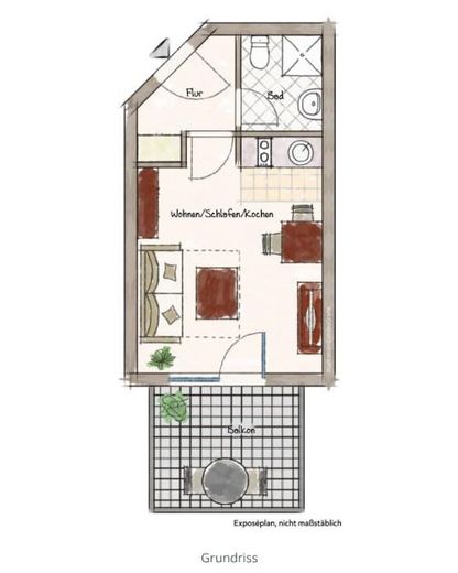 - Wohn-/Schlafraum mit integrierter Kochnische