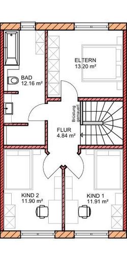 Im Obergeschoss befinden sich 3 Schlafzimmer und ein großes Bad. Ein offen gestalteter Eingangsbereich mit Garderobe und Gäste WC, eine Massivtreppe mit Naturstein belegt, sorgen beim betreten des Hauses für den besonderen Effekt.