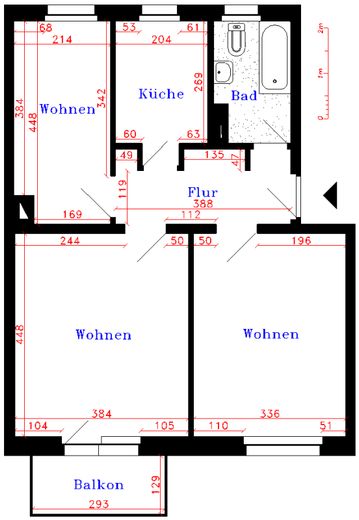 Diese ansprechende Immobilie ist eine 3 Zimmerwohnung, 56qm, in der 1. Etage/Erdgeschoss.