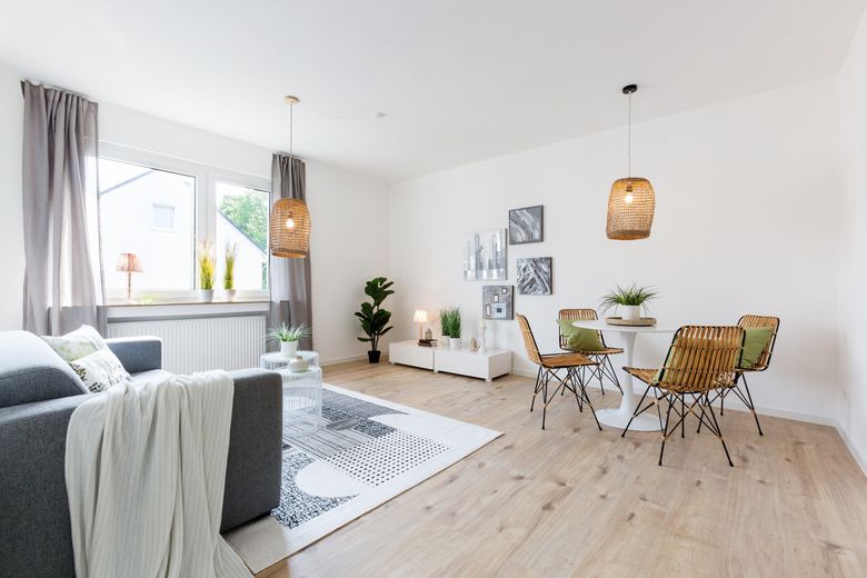 Die Wohnung ist frisch saniert. Von der Elektrik, über Wände und Bodenbeläge bis hin zum Badezimmer inklusive Zu- u. Ableitungen ist alles auf dem neuesten Stand. Im gesamten Wohnbereich ist ein wunderschöner und hochwertiger Eiche Laminatboden verlegt. Das Badezimmer ist modern und zeitlos in weiß und grau gefliest. Neue weiße Türen und Steckdosen geben den modernen und hellen Gesamtbild der Wohnung den letzten Feinschliff.
