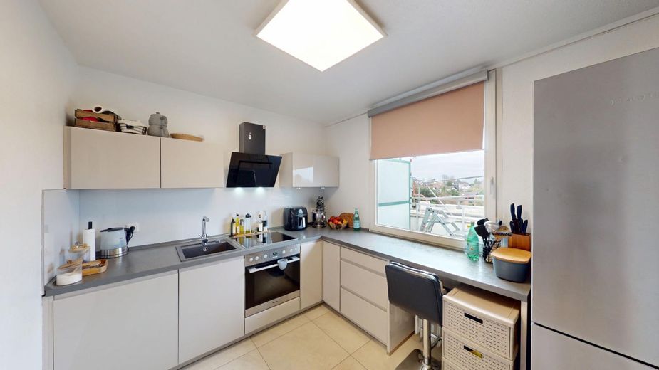Die Dachterrasse wurde neu abgedichtet, der Terrassenbelag wird erneuert. Die Einbauküche ist im Kaufpreis enthalten.