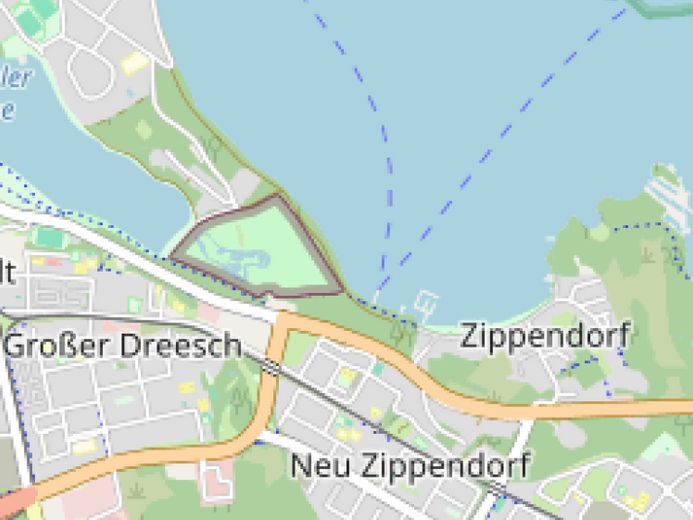 Das rechteckige Grundstück bietet sich geradezu an, auf drei Seiten Wohnbebauung, auf der vierten Seite der Schweriner See.