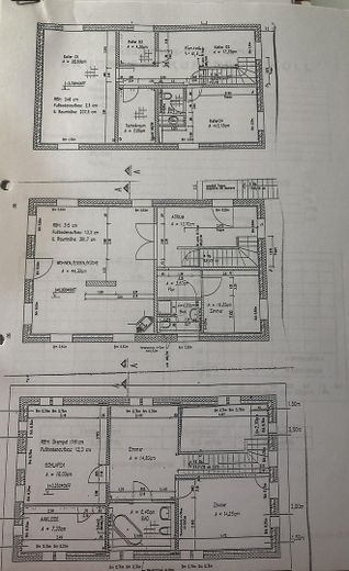 Die angehängten Grundrisse sind aus der Bau- u. Planungszeit und weichen vom Ergebnis leicht ab. Im Ergeschoss wurde ein kleiner Vorflur abgetrennt, in Richtung kleines Zimmer eine Tür eingebaut, der Eckanschluss für die Küchenspüle verlängert und im Dachgeschoss in der offenen Galerie eine Trockenbauwand eingezogen, so dass ein zusätzliches kleines Zimmer entsteht.