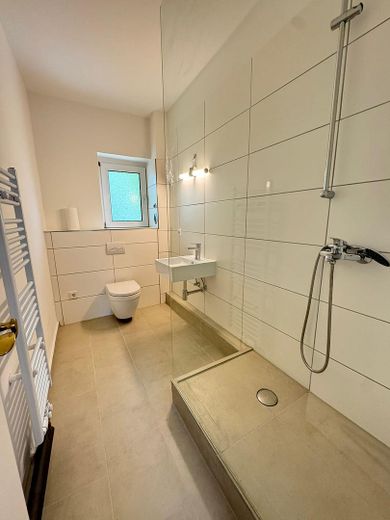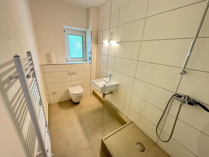 Der helle und praktische Grundriss sorgt für ein angenehmes Raumgefühl. Alle Wände wurden neu gespachtelt und gestrichen, wodurch die Räume besonders frisch und einladend wirken. Der hochwertig sanierte Sanitärbereich umfasst ein modernes Duschbad mit eleganten Fliesen, neuem Waschbecken, WC und einem neuen Handtuchheizkörper – perfekt abgestimmt auf heutige Ansprüche.