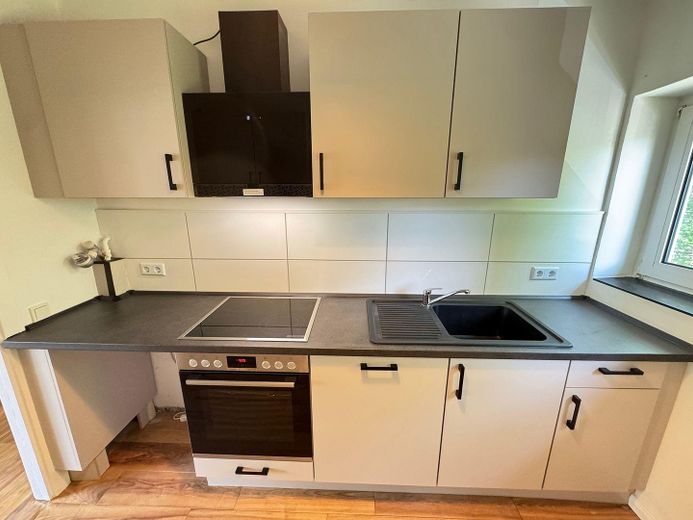 Die stilvolle, neue Einbauküche in beidseitiger Anordnung ist mit hochwertigen Bosch-Elektrogeräten ausgestattet und bietet ausreichend Stauraum sowie Arbeitsfläche – ideal für Hobbyköche und Genießer. Der Einzug ist ohne weiteren Aufwand möglich.