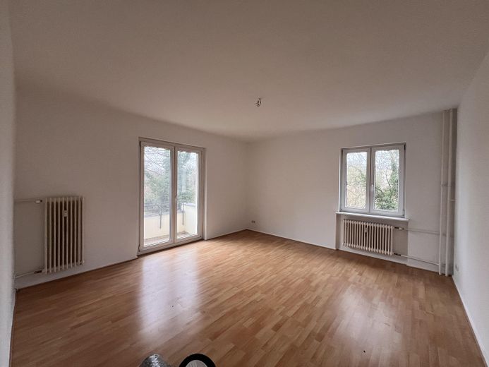 Die freie Wohnung ist ab sofort verfügbar und bezugsfertig. Diese gut geschnittene und helle 2-Zimmer-Wohnung im ersten Stock hat ca. 58 m² Wohnfläche. Sie befindet sich in einem gepflegten Objekt aus dem Jahr 1959. Wohnzimmer und Schlafzimmer sind etwa gleich groß. Der Balkon bietet zur einen Seite einen unverbauten Blick über die Schrebergärten. Das Bad mit Tageslicht verfügt über eine Badewanne.