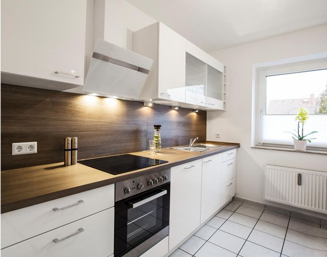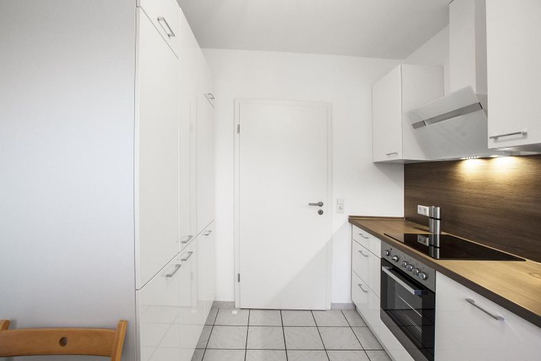 Die Wohnung verfügt über eine moderne und funktionale Ausstattung mit Einbauküche, zeitgemäßem Bodenbelag und frisch gestrichenen Wänden.