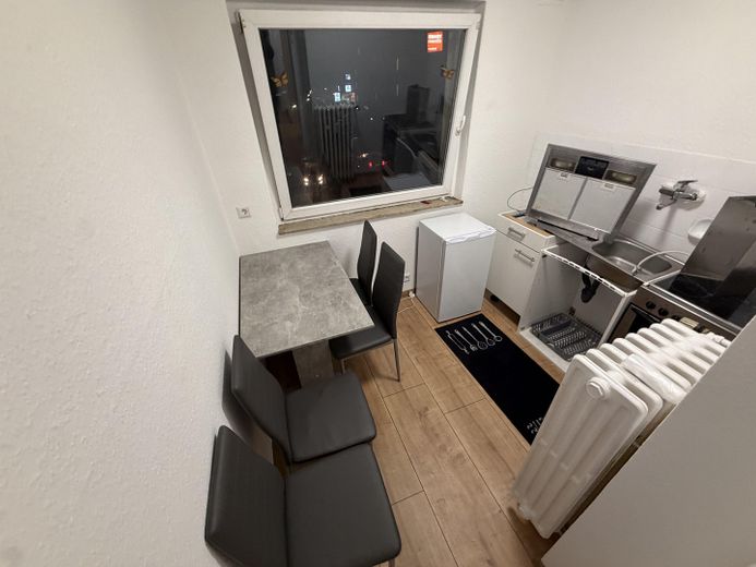 Die Wohnung befindet sich im bequemen 1. Obergeschoss und wurde gerade frisch hergerichtet. Die Möbel und halbaufgebaute Küche können kostenlos übernommen werden, oder nicht übernommen werden.