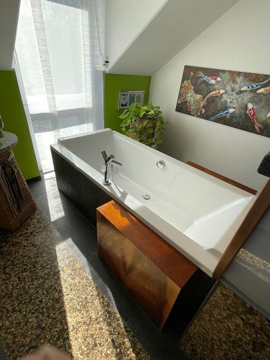 Ein weiteres Highlight befindet sich im Keller. Ein Wellnesraum incl. Sauna mit Sanarium Funktion lädt dort zum entspannen ein. Beheizt wird das Haus durch eine Pelletsheizung, die bei Bedarf auch auf Stückholz umgestellt werden kann. Der Garten mit viel Liebe zum Detail ist in mehreren Ebenen angelgt und bietet viel Privatshäre. Zur Bewässerung steht eine unterirdische 10.000 Liter Zisterne zur Verfügung.