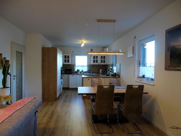 Als Wärmeträger dient eine Fußbodenheizung. Das Haus ist vollumfänglich gedämmt mit einem Kaltdachstuhl.