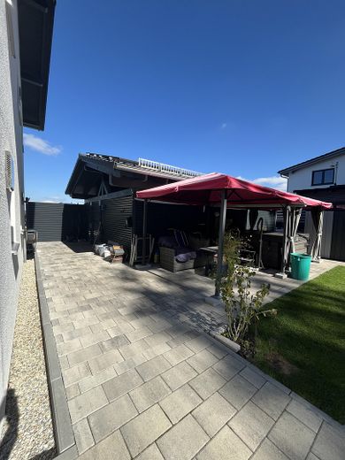 Der Carport ist massiv gebaut und aus Aluminium, er bietet 3 Fahrzeugen ausreichend Platz, auch zusätzlicher Stauraum ist vorhanden.