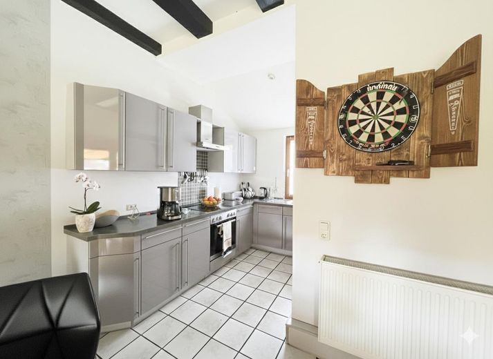 Grauton (ca. 12–13 Jahre). Die Elektrogeräte sind integriert. Direkt neben der Küche befindet sich ein