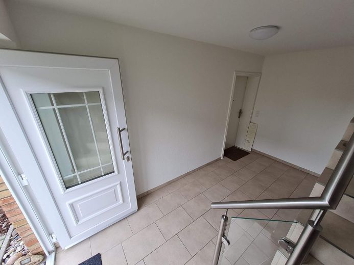 Die Wohnung befindet sich im Obergeschoss eines neuwertigen, gehobenen 6-Parteien-Mehrfamilienhaus, Baujahr 2016, in einem Neubaugebiet in ruhiger aber zentraler Lage von Husum. Eine Stadtvilla mit zwei Vollgeschossen, die in Massivbauweise und KfW-55-Standard hergestellt wurde. Das Haus besteht aus 3 Hausscheiben, je eine Wohnung im EG und eine Wohnung im OG teilen sich ein Treppenhaus. Jede Wohnung verfügt über eine eigene Sole-Wärmepumpe (Erdwärme) mit sehr geringen Verbrauchskosten (ca. 35€/Monat f. Strom) sowie einer Sensor-gesteuerten Lüftungsanlage. Die Wohnung ist mit einer kleinen PV-Anlage ausgestattet.