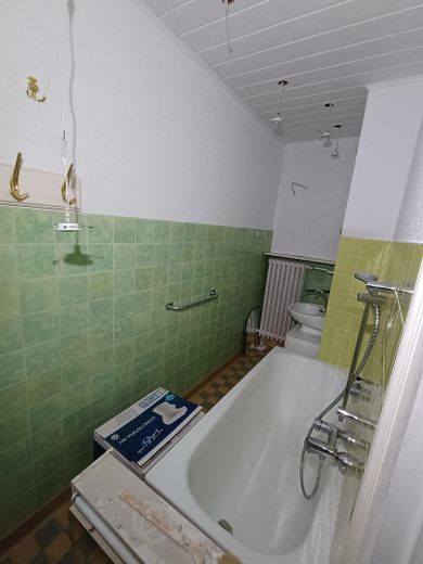 Das Haus wird im aktuellen, unrenovierten Zustand vermietet. Die Ausstattung ist einfach und entspricht im Wesentlichen dem Stand der letzten größeren Maßnahmen. Beheizt wird die Immobilie über eine Gas-Zentralheizung; die Warmwasserversorgung erfolgt teilweise über Durchlauferhitzer.