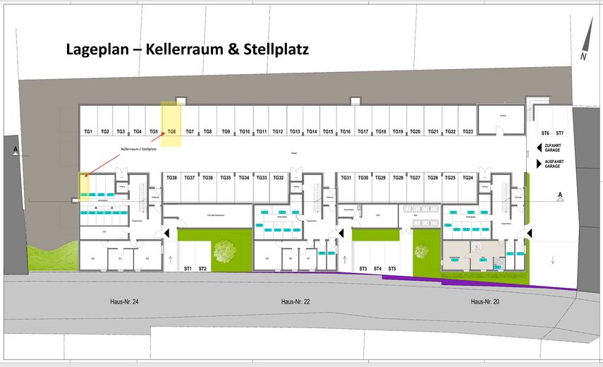 Neben dem TG-Stellplatz ist es möglich einen weiteren Außenstellplatz mit anzumieten.