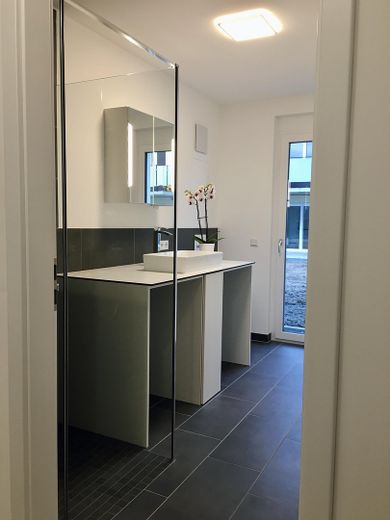 Die 3 Zimmerwohnung liegt in einem 10 Parteienhaus mit sehr netten Nachbarn- Neubau 2019 - Zweitvermietung. TOP-Zustand, barrierefrei. 94m², Haupt- und Gästebad und eigener Gartenanteil ca. 176m². Lampen, EBK und Badausstattung im Mietpreis enthalten.