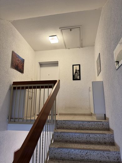 Zur Wohnung gehören außerdem ein Stellplatz sowie ein Kellerraum. Darüber hinaus gibt es einen gemeinschaftlich genutzten Waschkeller mit Anschlüssen für Waschmaschine und Trockner sowie einen Fahrradkeller mit zugehörigem Ausgang.
