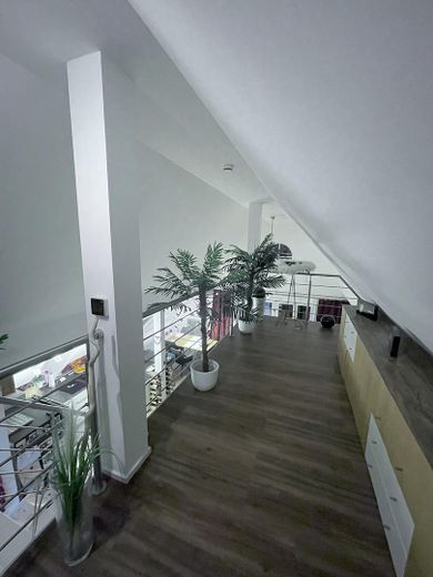 Schwebende Treppe zur Galerie mit Edelstahlgeländer