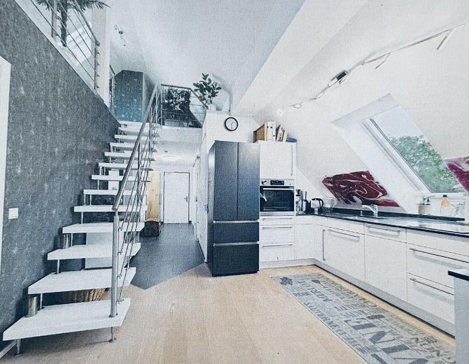 Einbauküche mit Granitplatte. Überdachter Balkon mit Glas-Lamellendach verstellbar. Zwei Duplex-Stellplätze sind der Wohnung zugeordnet.