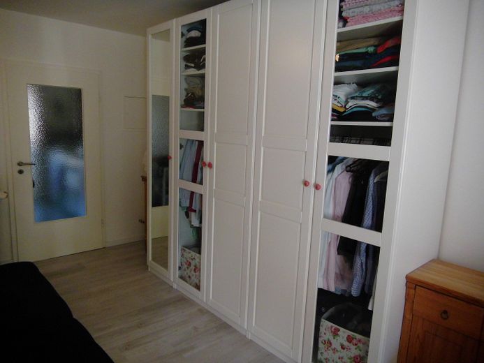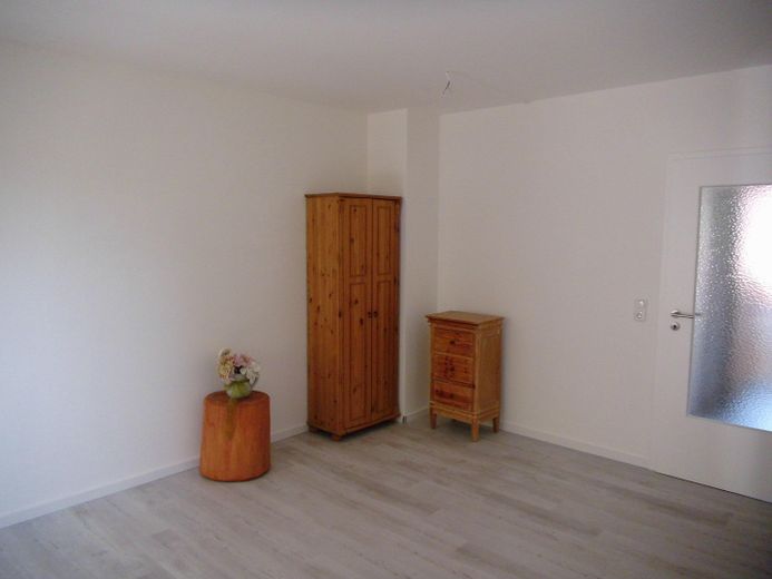 Der Wohn-und Schlafraum ist geräumig, renoviert und mit Laminat ausgelegt. Die Wohnung ist nach Süden ausgerichtet. Vom Balkon hat man Blick ins Grüne und kann dort gut verweilen.