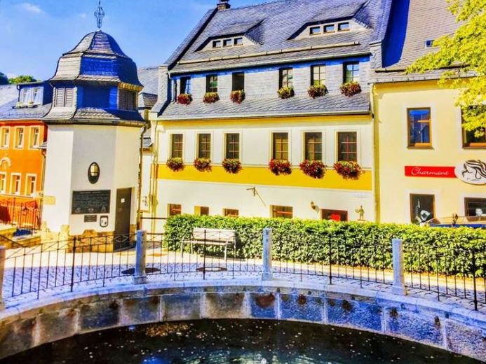 In bester Lage der Schwarzenberger Altstadt steht Ihnen diese moderne Büro- oder Praxiseinheit zur Verfügung. Im 1. Obergeschoss eines ruhigen Wohn- und Geschäftshauses mit nur drei Einheiten bieten sich insgesamt ca. 130 m² Fläche. Aufgeteilt ist die Einheit in einen großen Flur- und Eingangsbereich, 2 Büroräumen, einen großen Besprechungsraum, einer Küche mit Essplatz und Zugang zum Balkon, einem Bad und einem Gäste-WC. Ein Büro und der Besprechungsraum sind mit hochwertigen Glastüren ausgestattet. In allen Büros sind Netzwerkanschlüsse und Steckdosen in der Fensterlaibungen vorhanden.