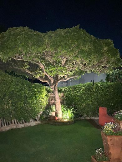 Der sonnige Garten ist uneinsehbar, sehr schön und pflegeleicht angelegt mit vielen reizvollen individuellen Akzenten gestaltet, alter Baubestand, eingezäunt, Zisterne mit leistungsstarker Pumpe, automatischer Bewässerung für die Hecke. Traumhafte Gartenbeleuchtung. Der Garten ist ausgerichtet Richtung Süd, West und Nordwest. Eine wahre Wohlfühloase mit vier großzügigen Terrassen, Whirlpool, Grillbereich, die sonnig, windgeschützt und mit Schattenplätzen ausgestattet und daher fast ganzjährig nutzbar ist.