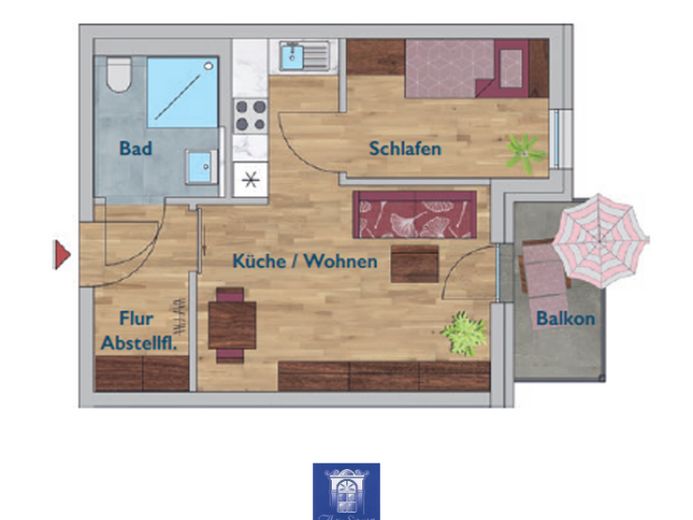 Vermietet wird eine kuschelige 2-Zimmerwohnung im 2. Obergeschoss. Im hellen großzügigen Wohnbereich ist die offene Küche mit moderner EBK integriert. Für Entspannung und Wohlbefinden sorgt der gemütliche Balkon. Hier können Sie gemütliche Stunden mit Freunden oder der Familie verbringen. Das Schlafzimmer verfügt über einen optimalen Zuschnitt. Das moderne Bad mit einer ebenerdiger Dusche und einem Handtuchheizkörper ist exklusiv ausgestattet. Der Anschluss für Ihre Waschmaschine sowie ein zusätzlicher Abstellraum zur Wohnung befinden sich im Treppenhaus.