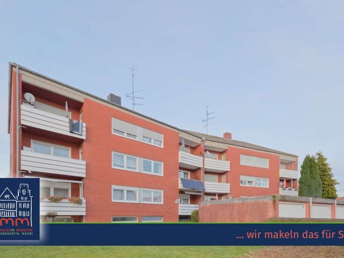 - 3 Zimmer, Küche, Bad, überdachter Balkon, zugehöriger Kellerraum