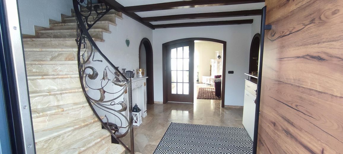 Im Erdgeschoß ist ein hochwertiger italienischer Marmor, im Schlafzimmer Parkettboden, im Bad und Gäste WC sind Fliesen verlegt.