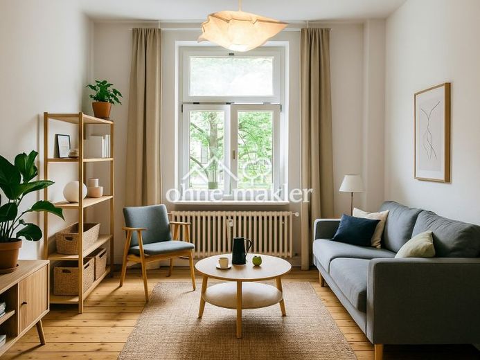 Hinweis: die Bilder der Möbilierung sind Beispielhaft und stellen nicht den fertig möbilierten Zustand dar, da noch erst zu ende renoviert werden muss bevor möbiliert wird. Das Zimmer ist größer als auf dem Bild (siehe Grundriss) und wird auf jeden Fall ein Bett oder Schlafcou haben.