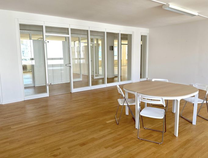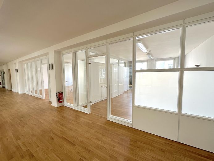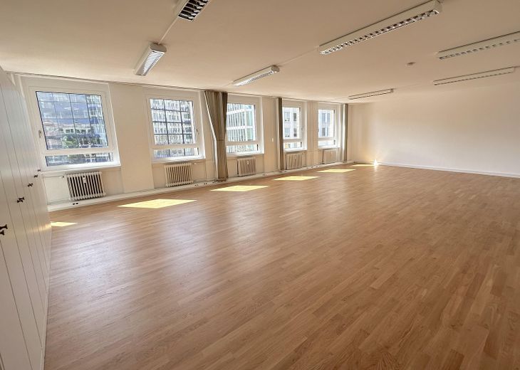 Freundliche, sehr helle und vielseitige Räume in Hamburgs Mitte. Beidseitige Belichtung und Glaswände schaffen transparente Räume im gesamten Objekt. Naturholzboden und Offenheit fördern Raumerlebnis und Wohlbefinden.