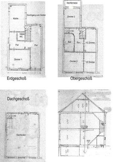 Ebenfalls ist ein kleiner Keller vorhanden. Das nicht ausgebaute Dachgeschoss hat ca . 35qm Nutzfläche.