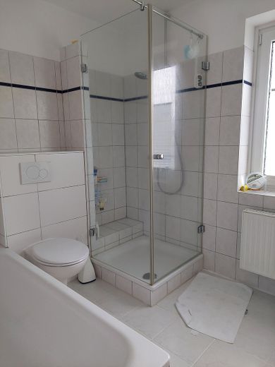 Seit unserem Einzug 1997 sind Küche, Bad, WC, Heizungsanlage, alle Fenster (auch im Keller) neu installiert worden. Die Terrasse ist mit einer 6m breiten Markise und die beiden Kinderzimmer, mit Zugang zur Loggia, jeweils mit Rollläden ausgestattet. In zwei Kellerräumen (Hobby, Werkstatt) sind Heizkörper vorhanden. Davon abgetrennt steht die Heizung von Viesmann. Außerdem gibt es eine große Waschküche. Alle Zimmer im Haus sind mit einem Kabel- und Antennenanschluss versehen. Seit 2025 sind Glasfaserkabel verlegt und im Einsatz. Aufgestellt sind zwei kleine und ein großes Kunststoff-Gartenhaus der Fa. Keter. Die darin befindlichen Gartengeräte überlassen wir. Die Loggia kann mit einem Balkonkraftwerk versehen werden