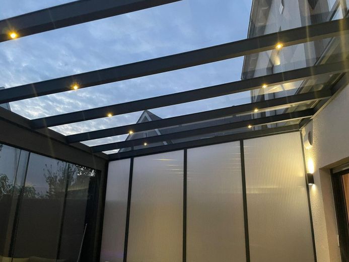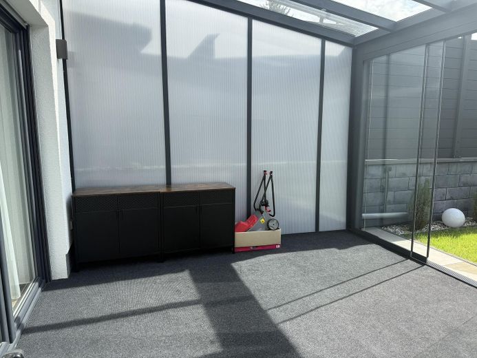 •Kalt-Wintergarten mit Teppichboden und elektrischer Markise