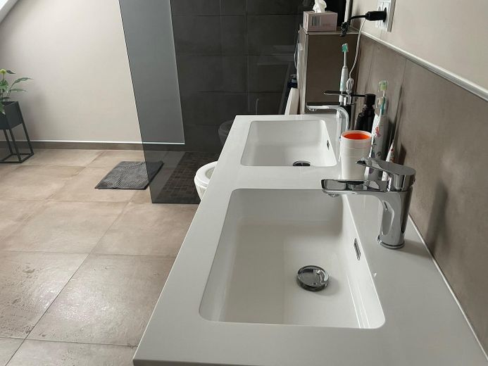 Das gesamte Obergeschoss bietet eine Wellness-Atmosphäre auf Hotelniveau. Hier fühlt man sich jeden Tag wie im eigenen privaten Spa und genießt Ruhe, Komfort und Privatsphäre in einem außergewöhnlichen Wohnambiente.