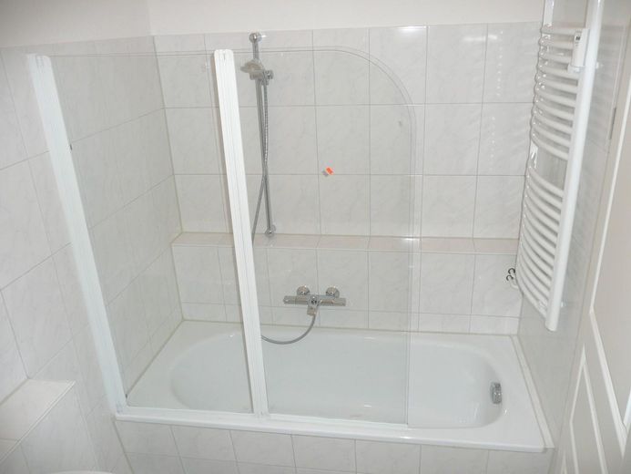 -neue Sanitärstränge, neugestaltete hochwertige komfortable Bäder mit Badewanne und Echtglas- Brauseabtrennung, Thermostat- Wannenarmatur, Wand-WC, neuen hochwertigen Wand- und Bodenfliesen, UP- Waschmaschinengarnitur, und Handtuch-Heizkörper