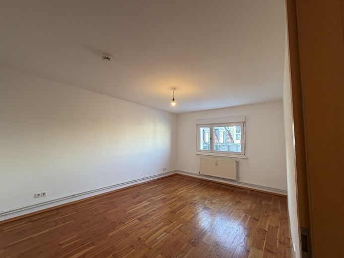 Alle Räume sind vom Flur aus zu erreichen (keine Durchgangszimmer). Zwei Zimmer liegen in Richtung Hof, ein Zimmer sowie Dad großzügige Wohnzimmer sind zur Straße hin gelegen.