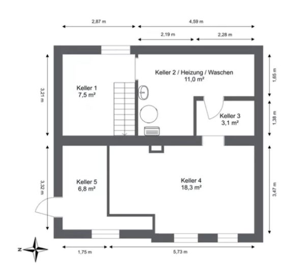 Das Wohnhaus verfügt über eine Gas-Zentralheizung mit Warmwasserspeicher (Baujahr 2012) sowie fünf Kellerräume, von denen einer als Trockenraum genutzt wird.