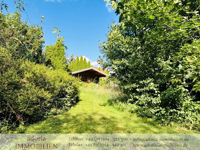 Auf dem mit vielen Sträuchern bewachsenen Grundstück wurde vor Jahren ein Gartenhäuschen errichtet, welches vom Käufer gerne mit übernommen werden kann. Ein Regenwasserteich am hinteren Ende des Grundstücks ist eine weitere besondere Eigenschaft.