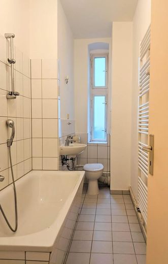 36 m², separate Küche, Badezimmer mit Badewanne.