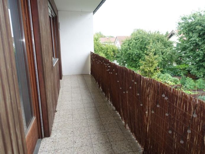 Das großzügige Wohnzimmer ist lichtdurchflutet und bietet Zugang zum überdachten Balkon – ideal für gemütliche Stunden im Freien.